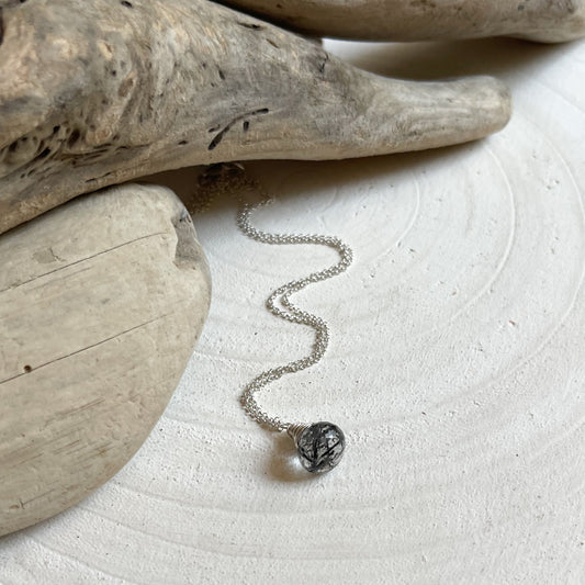Black Rutilated Quartz Silver Necklace