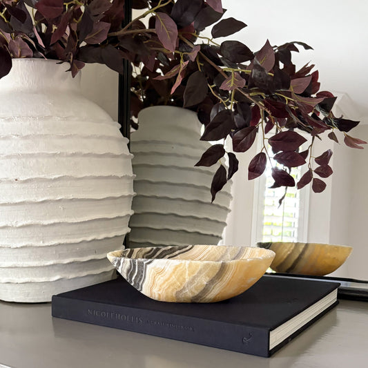 Small Hand Carved Amber Onyx Bowl