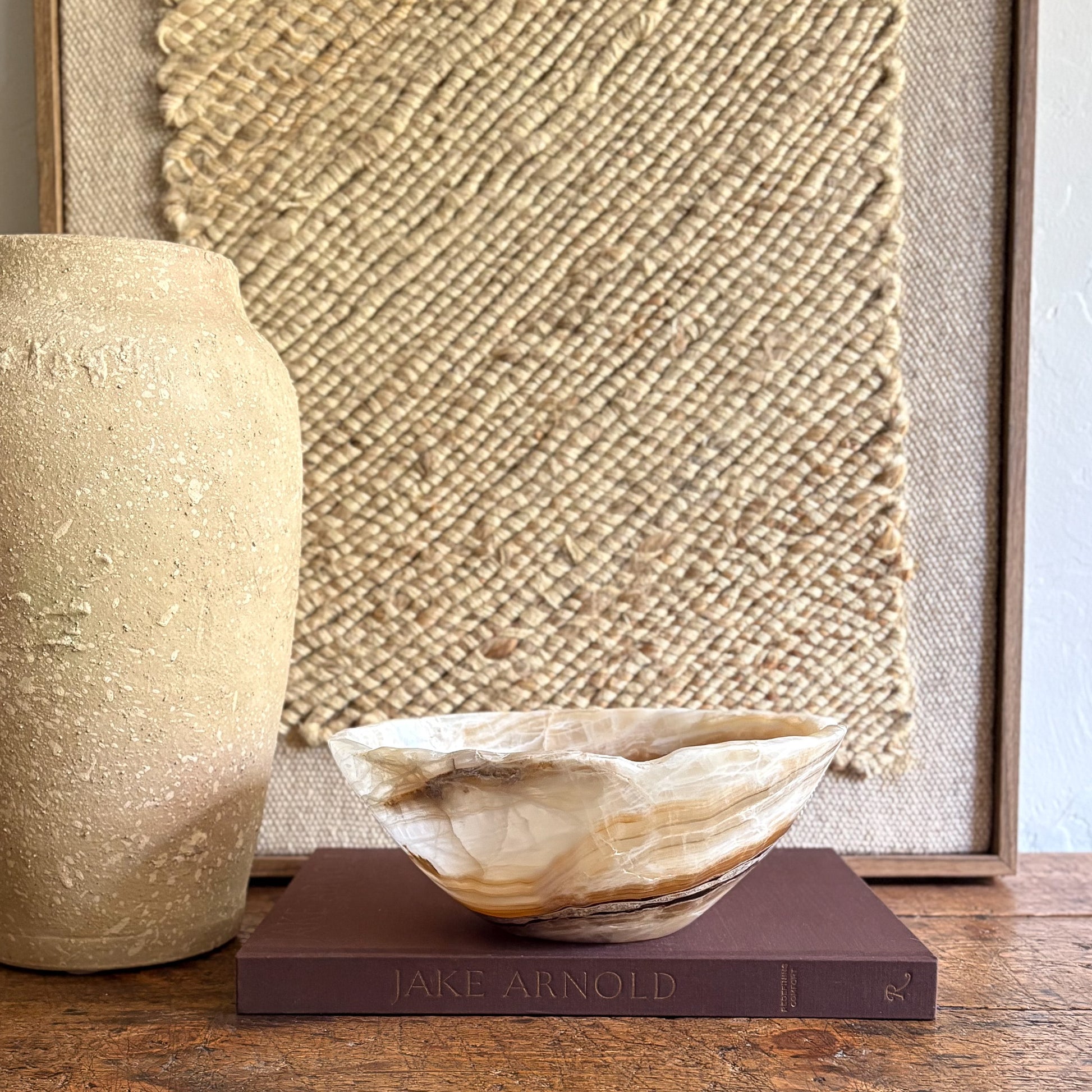 Amber onyx is prized for its soothing color and luminous translucence. Formed over centuries, this stone carries the quiet drama of nature’s artistry—now shaped into a functional accent for your table, shelf, or entryway. Whether styled alone or layered into a curated vignette, this bowl adds instant warmth and sophistication.