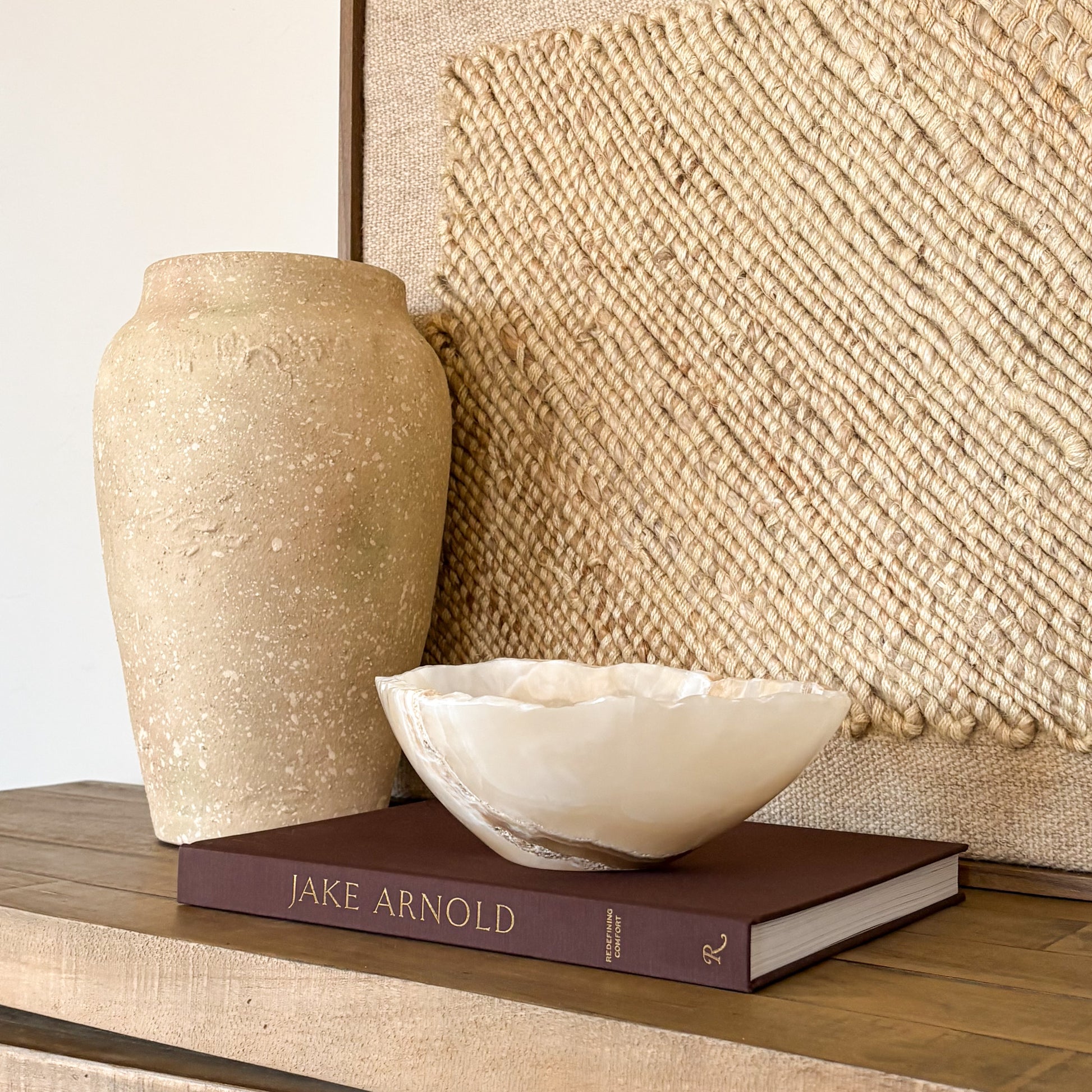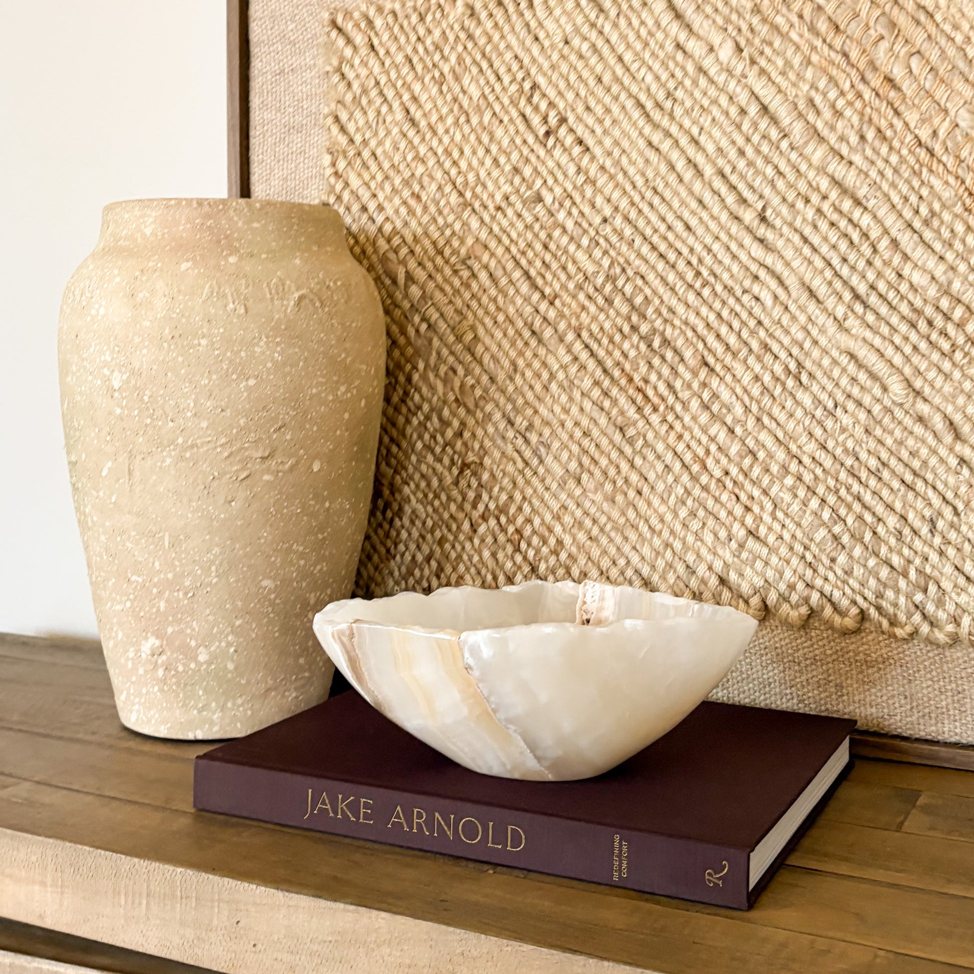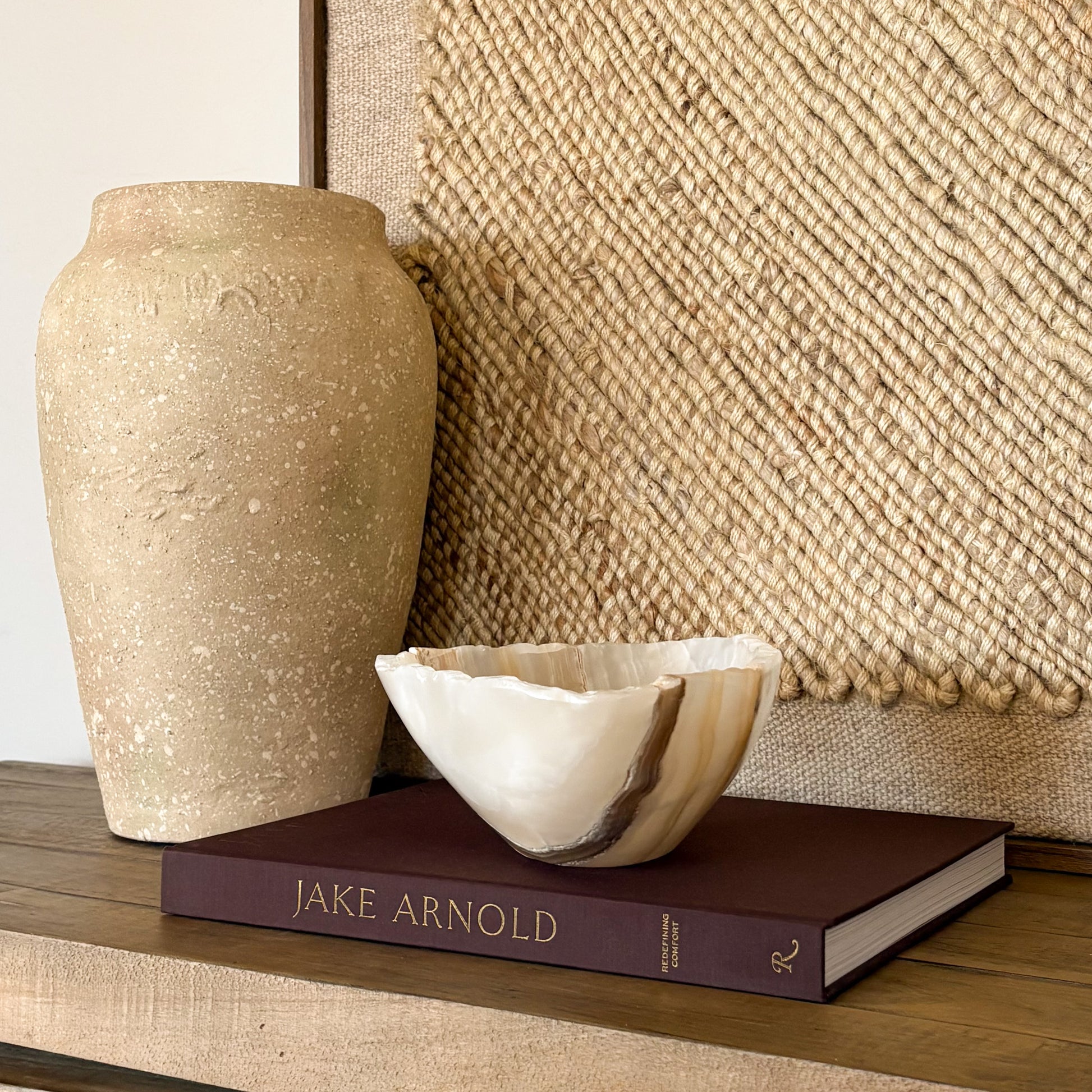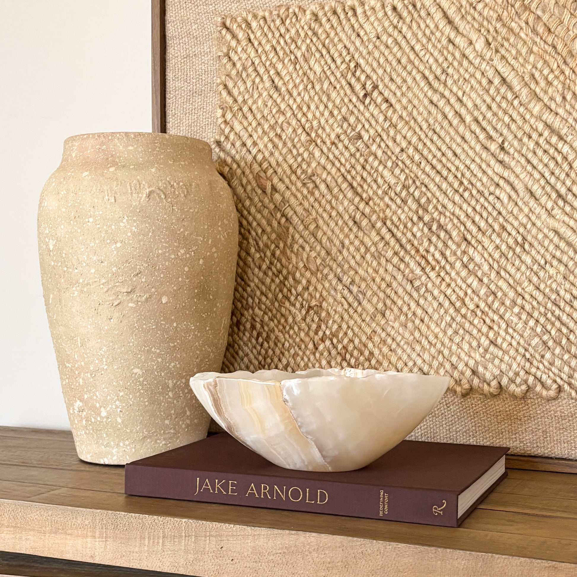 Amber onyx is prized for its soothing color and luminous translucence. Formed over centuries, this stone carries the quiet drama of nature’s artistry—now shaped into a functional accent for your table, shelf, or entryway. Whether styled alone or layered into a curated vignette, this bowl adds instant warmth and sophistication.