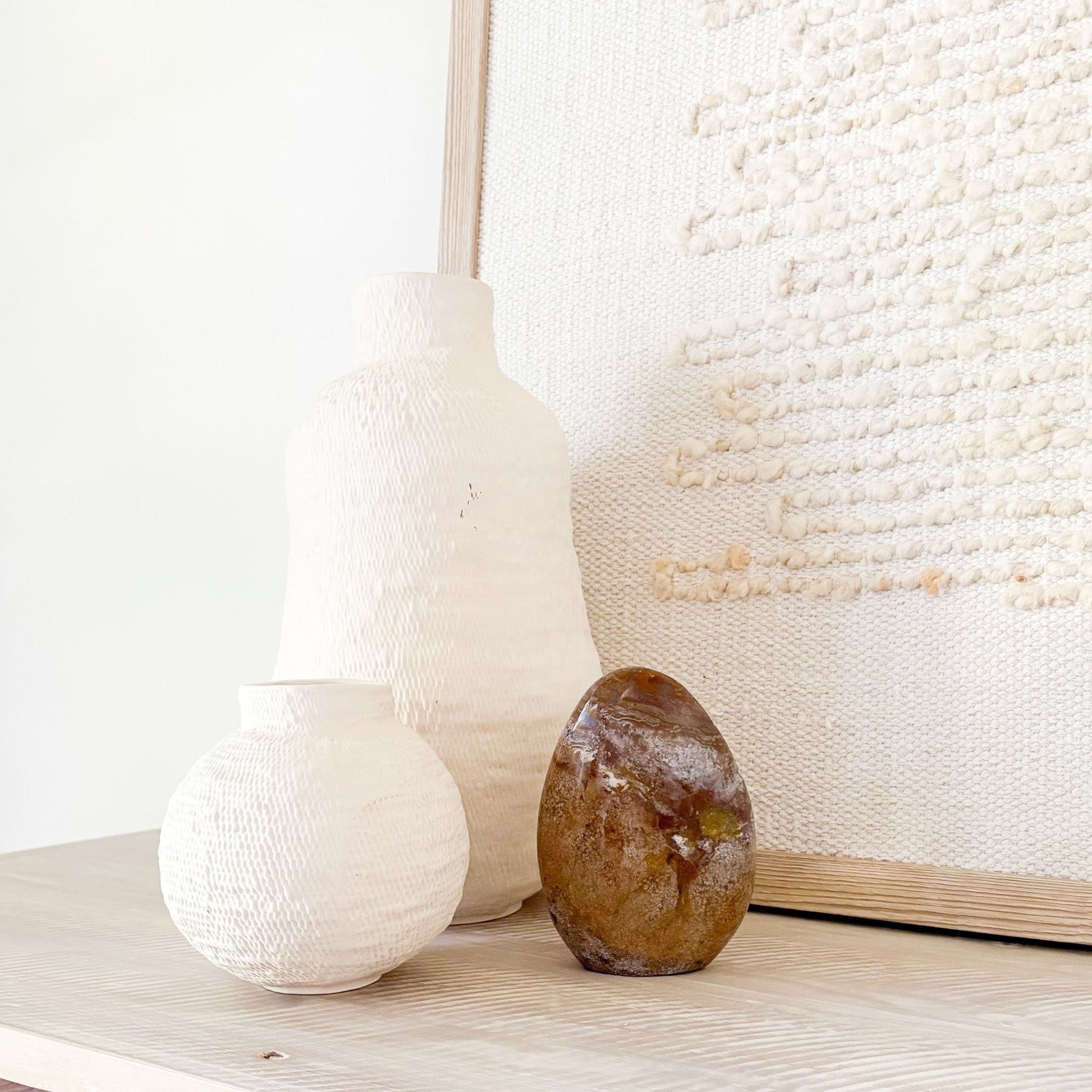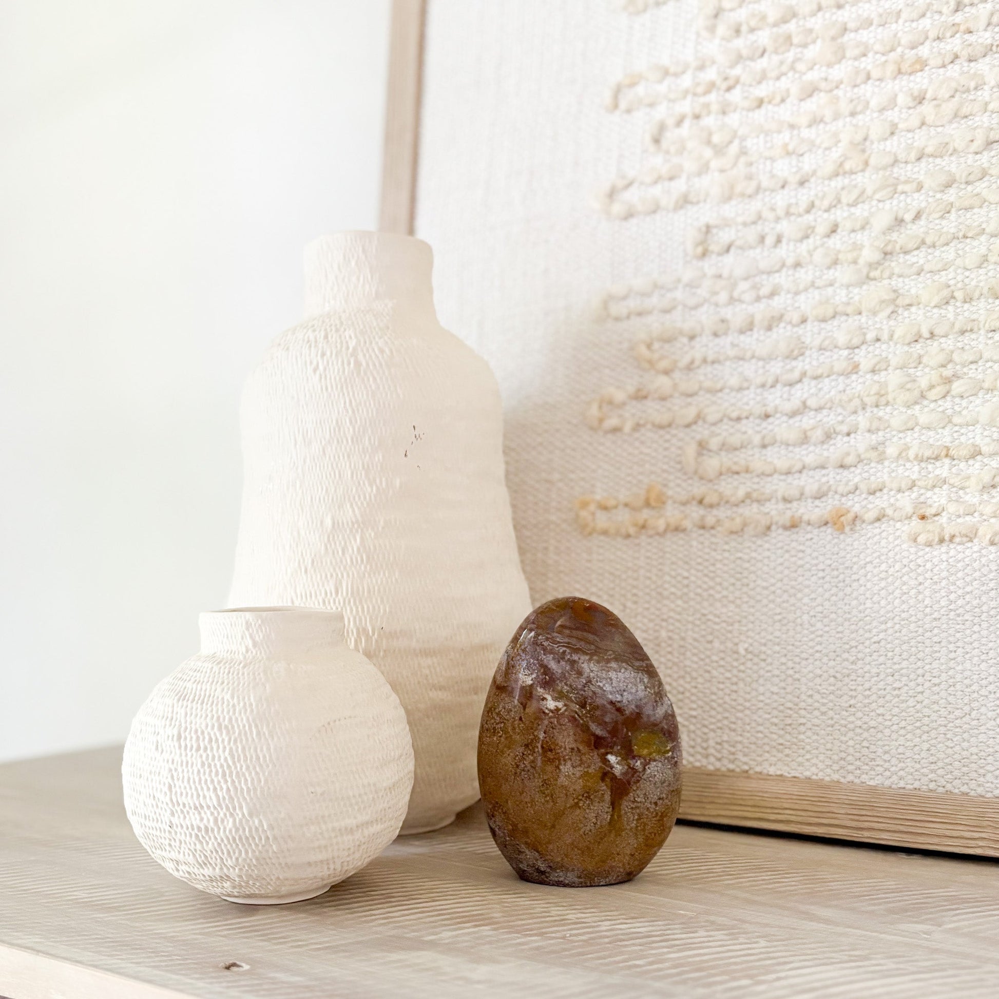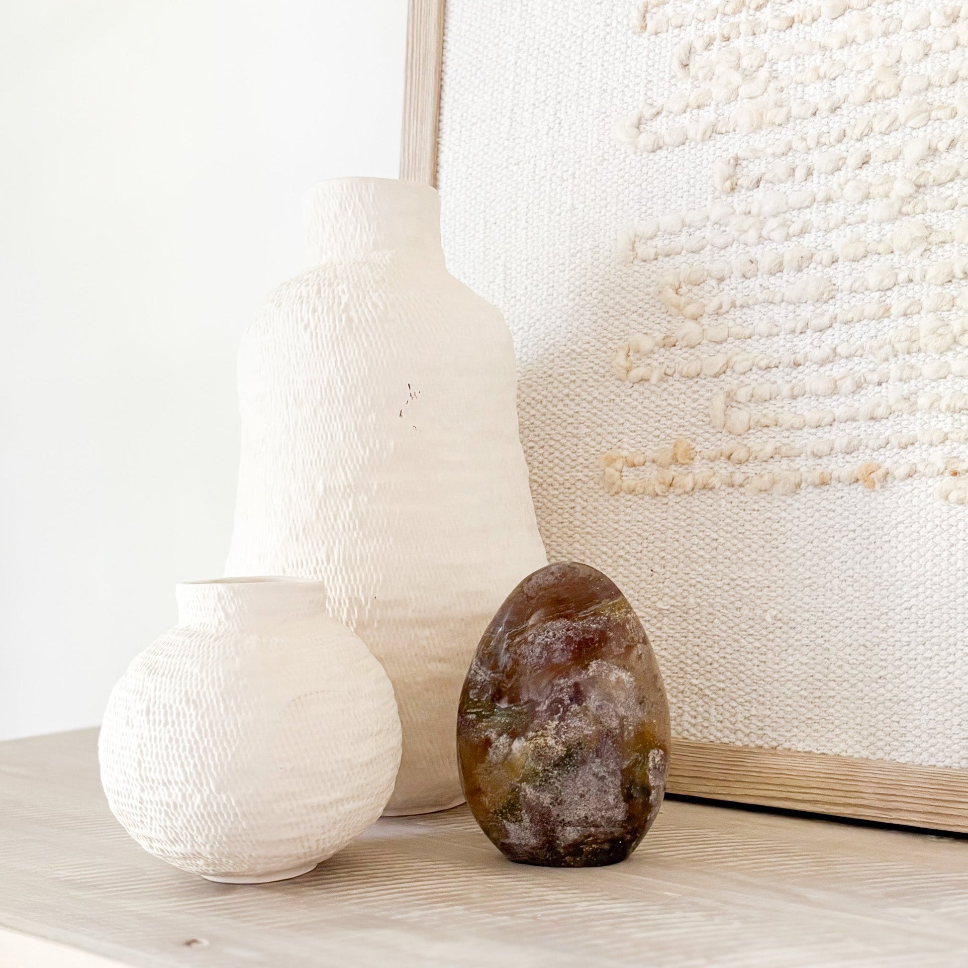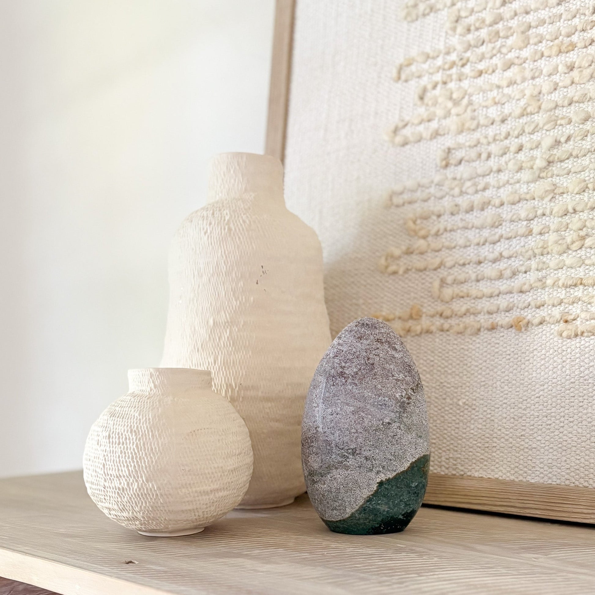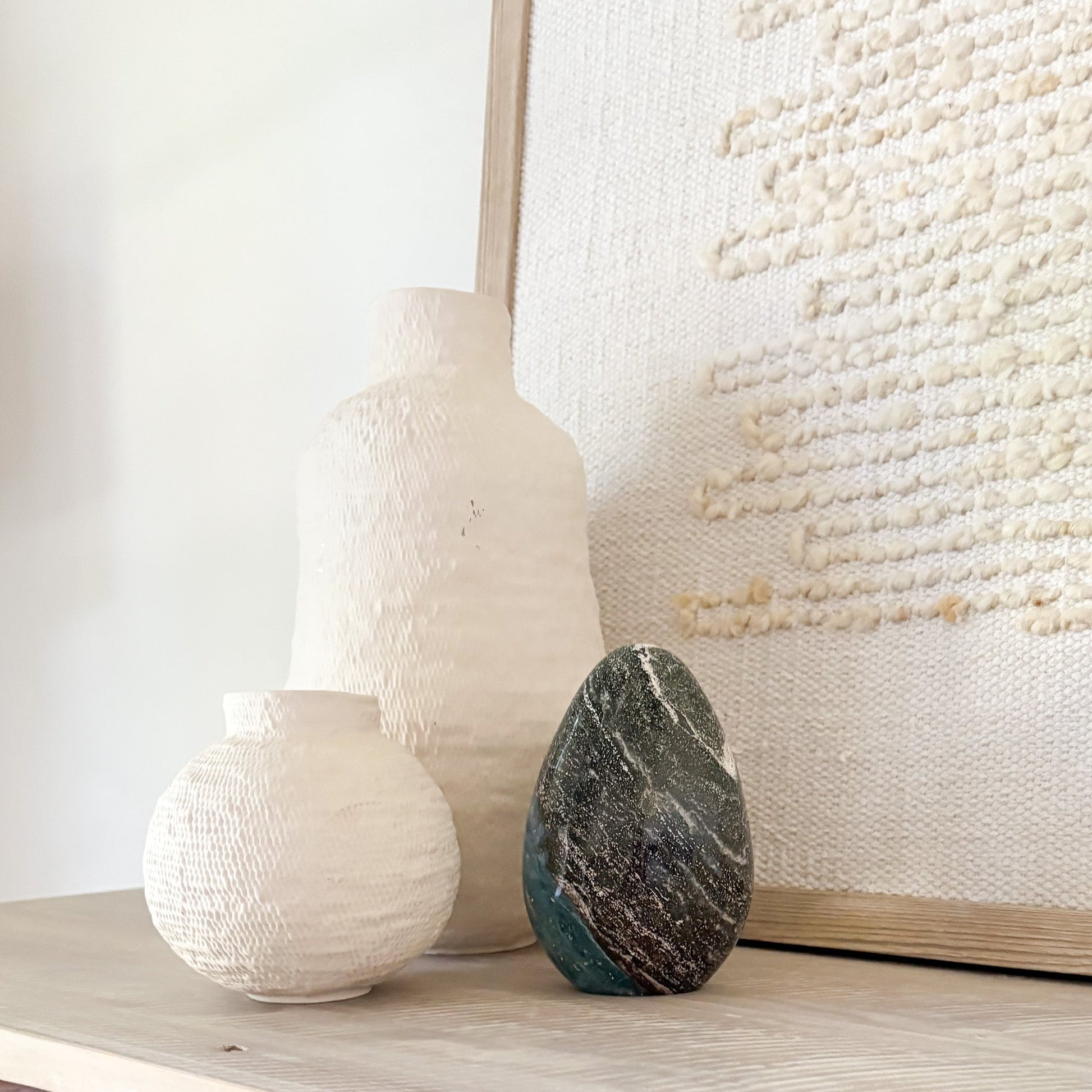 Each piece features oceanic hues and orbicular patterns that evoke coastal tranquility. Known as the “Stone of Joy,” Ocean Jasper promotes emotional healing, relaxation, and inner peace. Polished to a glossy finish, it’s a stunning focal point for any space—natural art with a serene presence.