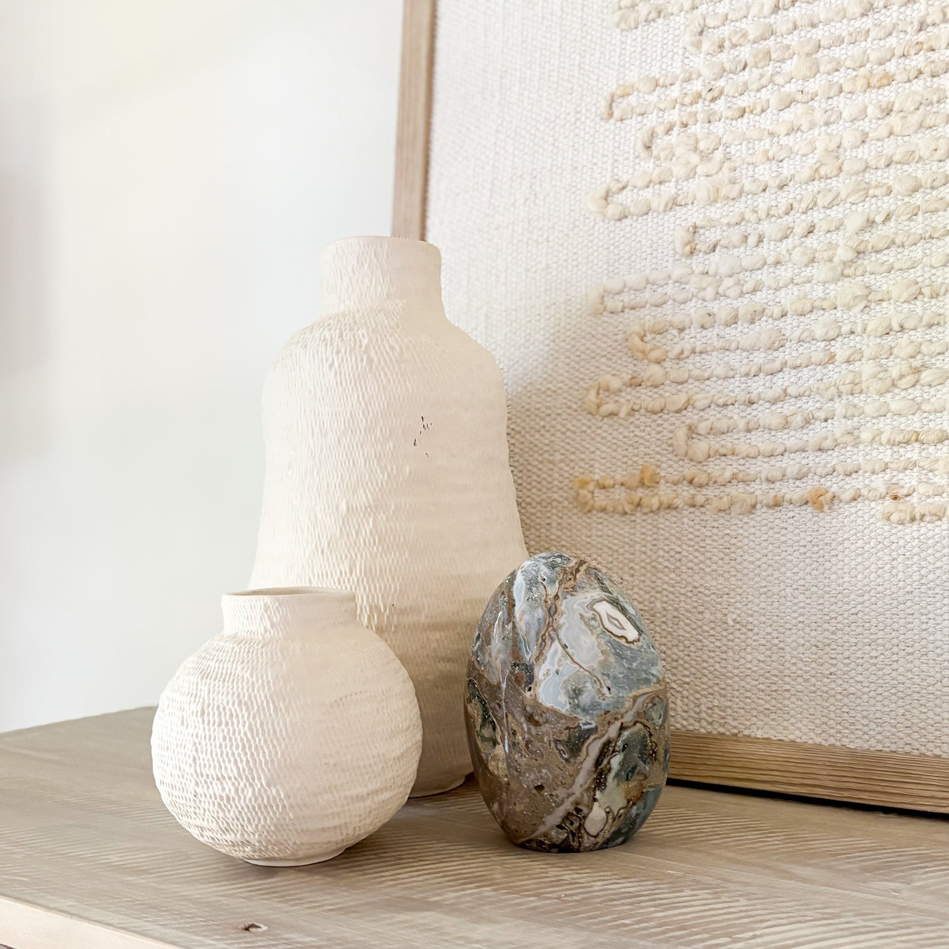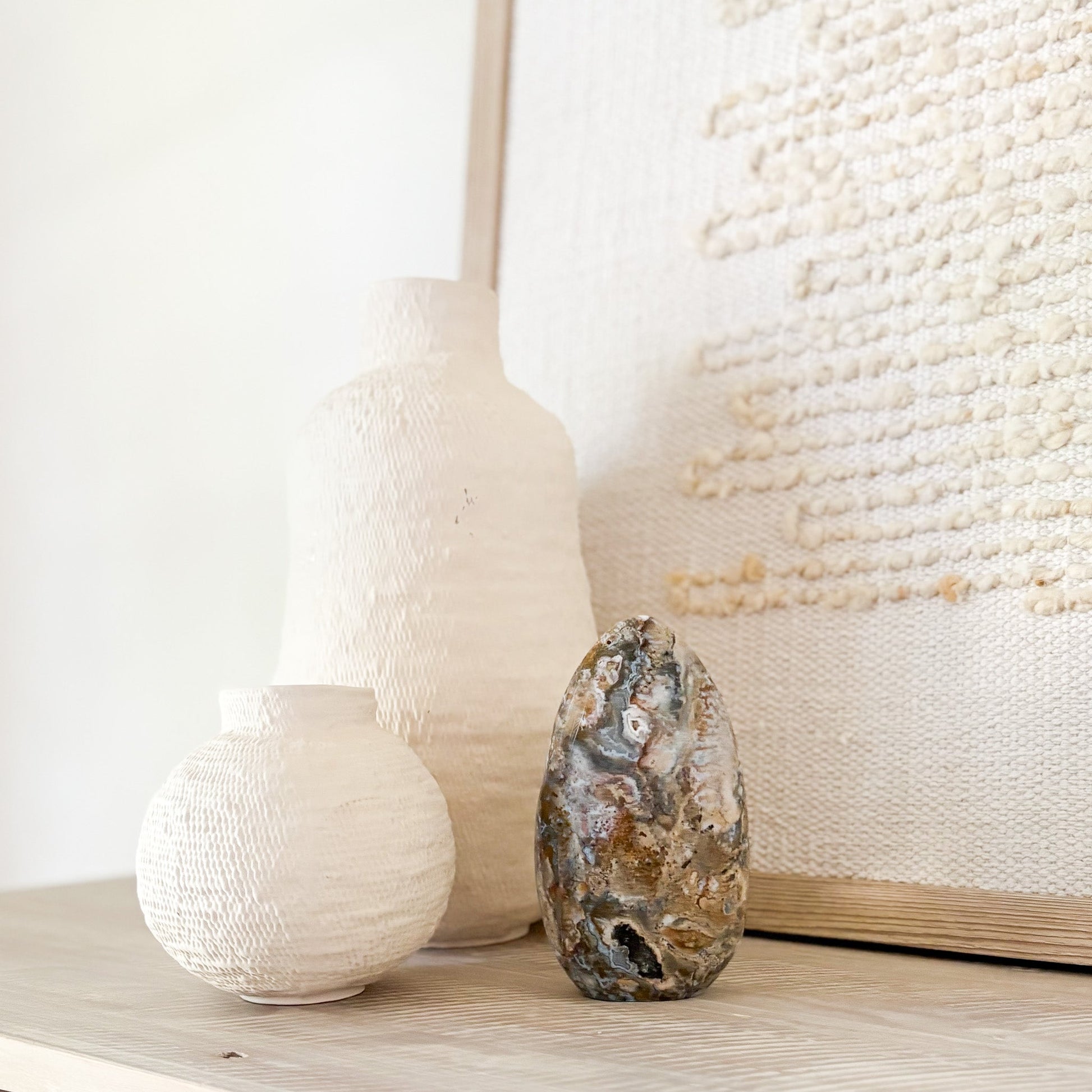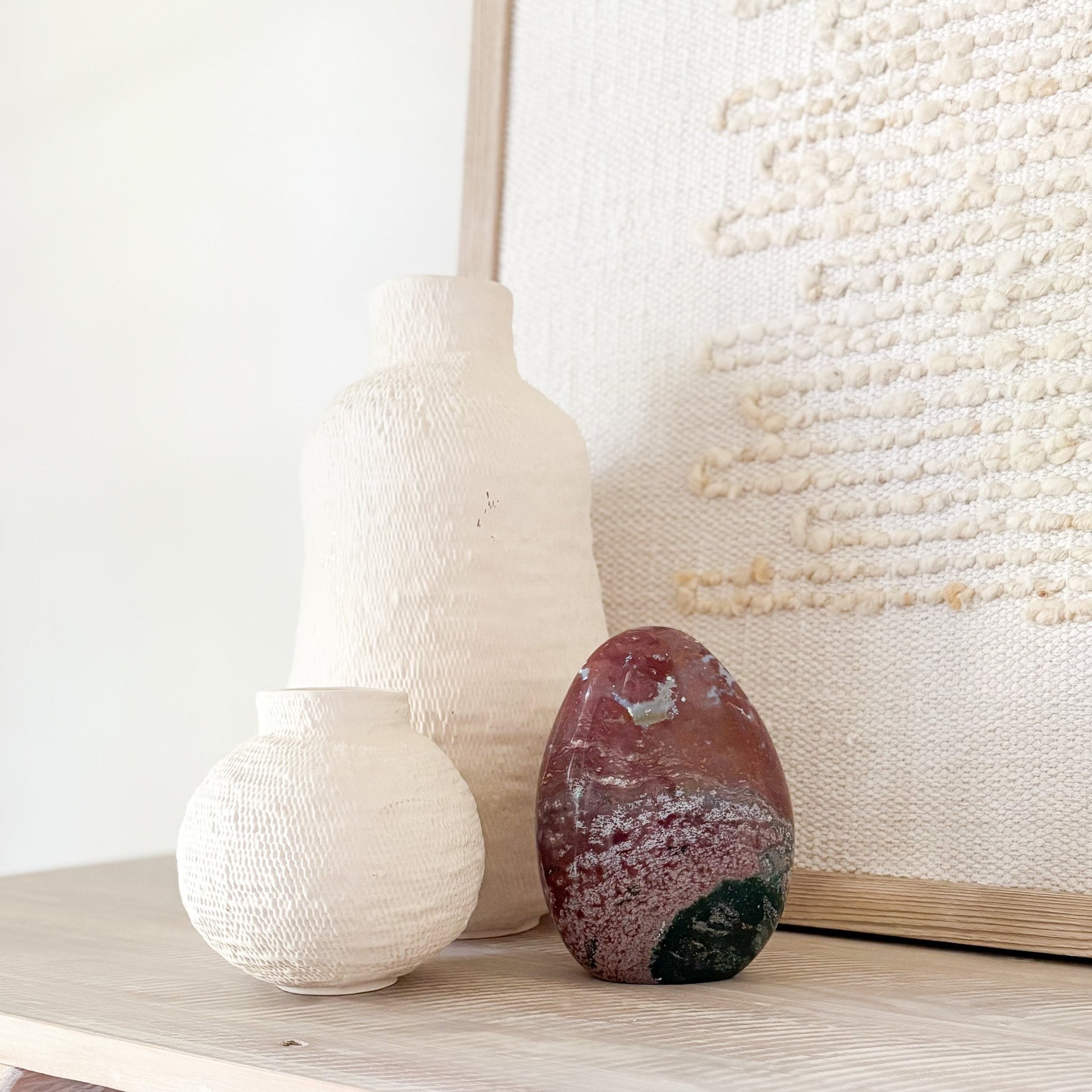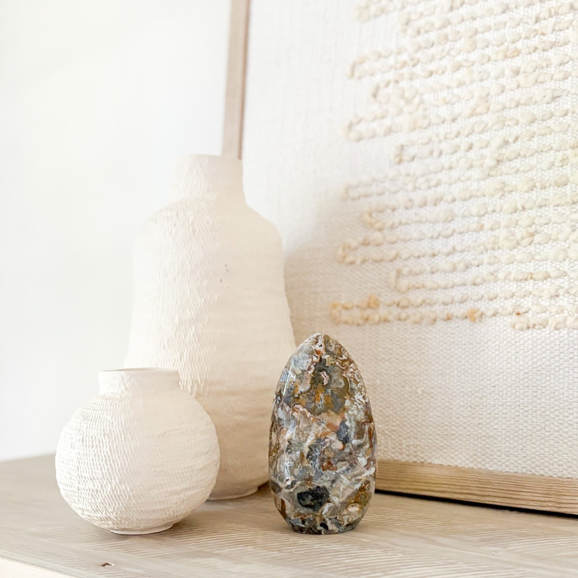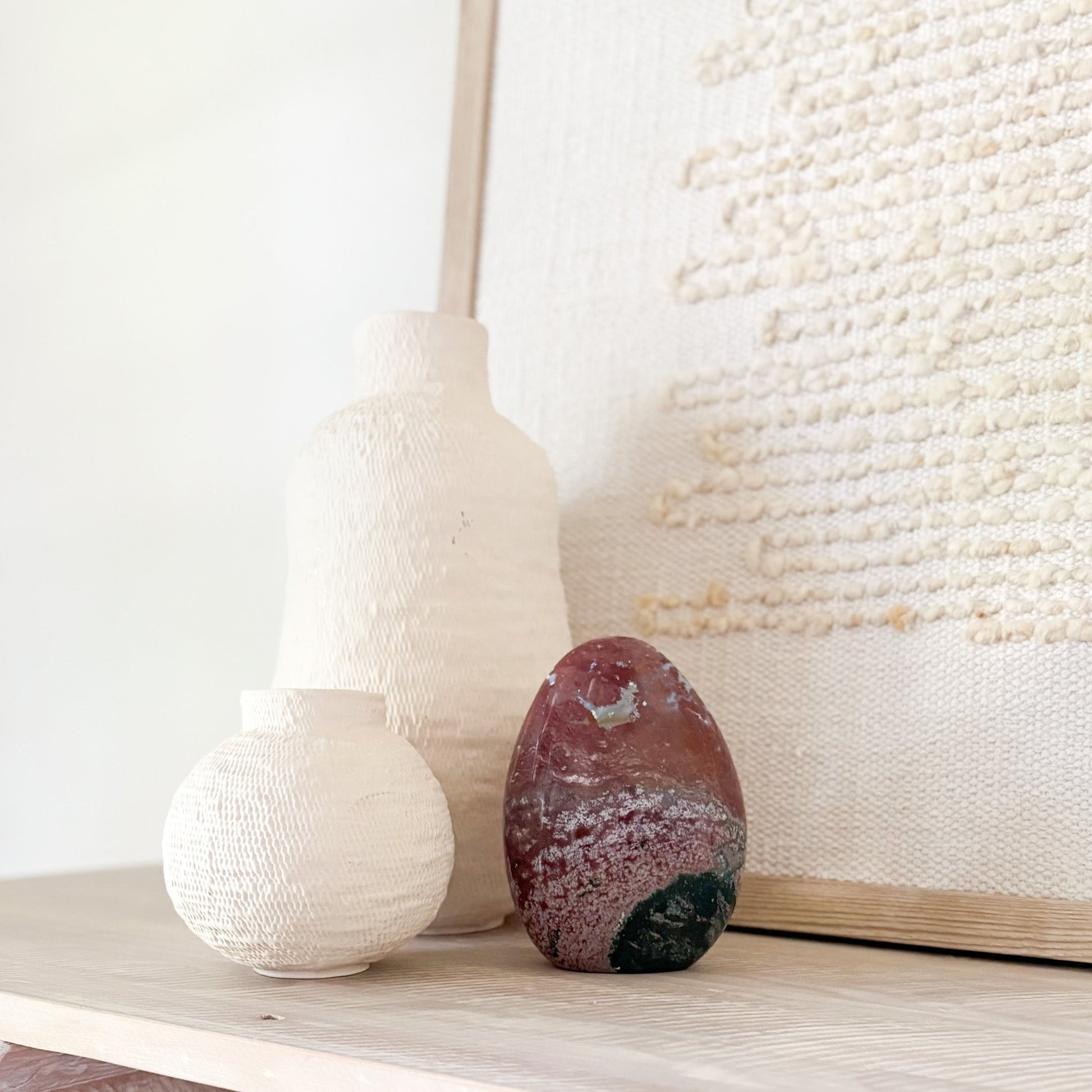 Discover the calming power and mesmerizing beauty of our Ocean Jasper Freeform, a rare gemstone born from ancient volcanic activity along Madagascar’s remote shores. Each piece is a one-of-a-kind masterpiece—swirling with orbs, waves, and earthy tones that echo the rhythm of the sea.