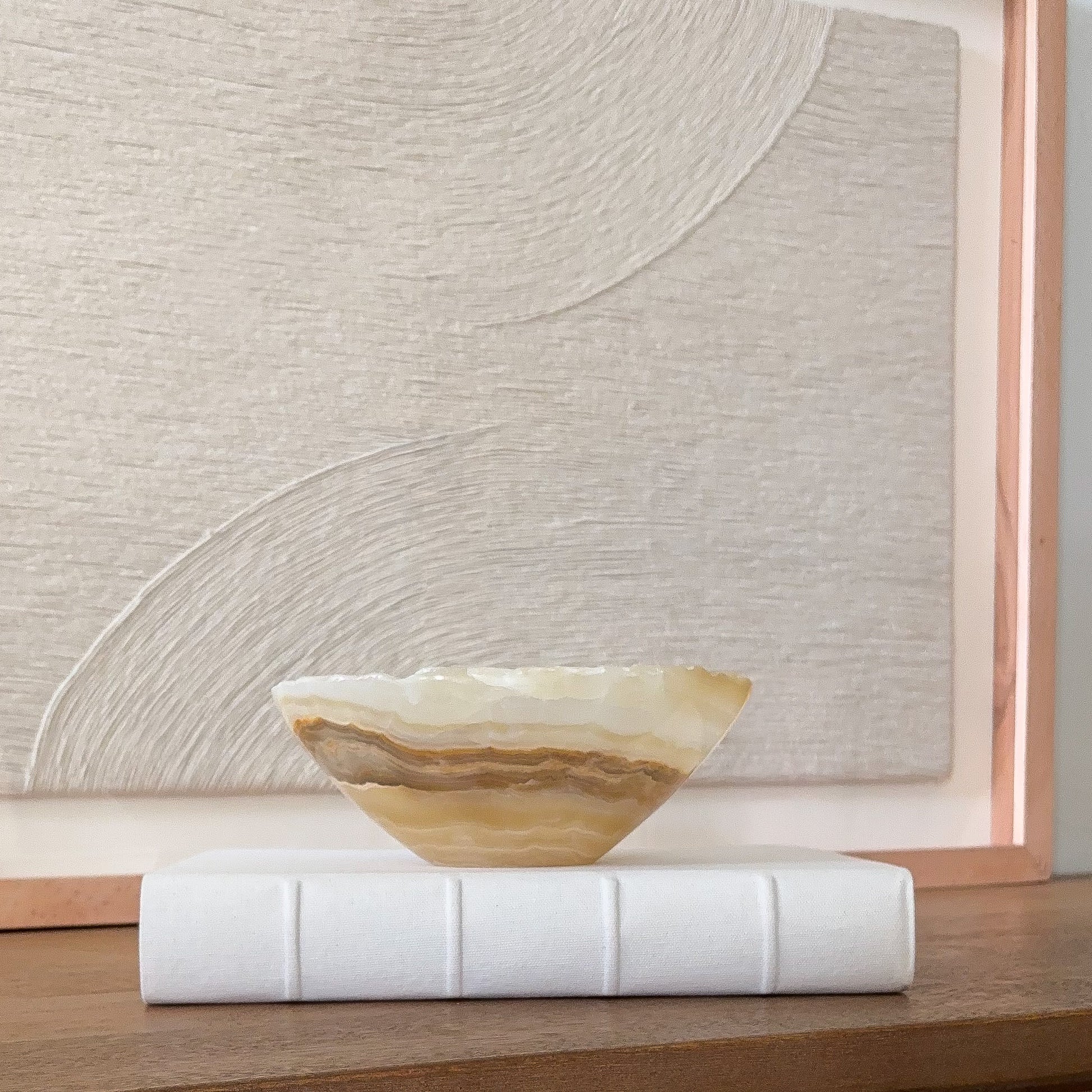 Thoughtful in its design and timeless in its aesthetic, this small amber onyx bowl is more than décor—it is a piece of natural art that elevates everyday living.