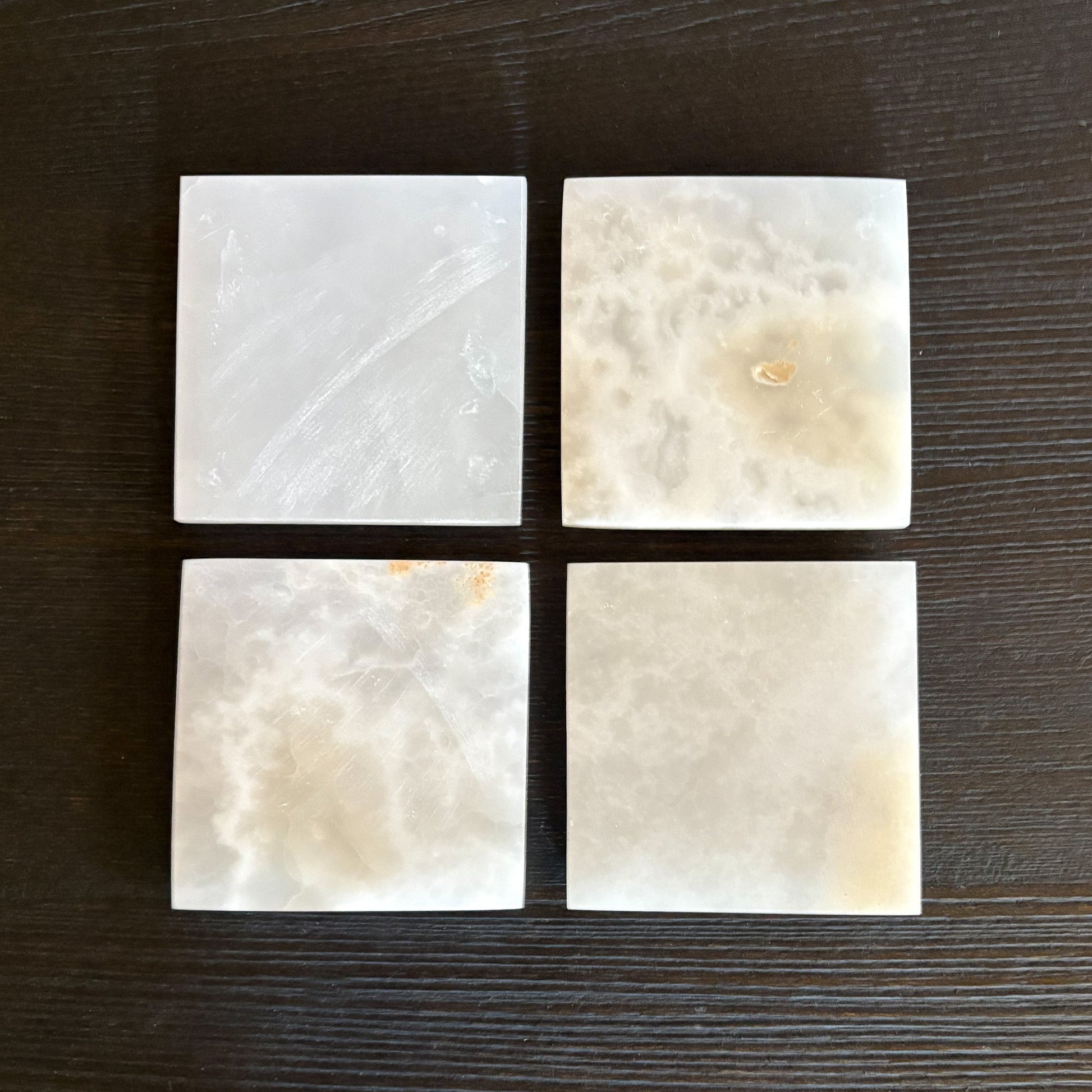Add a touch of elegance to your home or office with the sophisticated Grey Onyx Coaster Set. Crafted from premium, naturally veined onyx, these coasters boast a stunning, neutral color palette that effortlessly complements any décor. Whether you're enjoying your morning coffee or unwinding with a drink, these coasters offer both style and functionality, protecting your surfaces from heat, moisture, and spills.